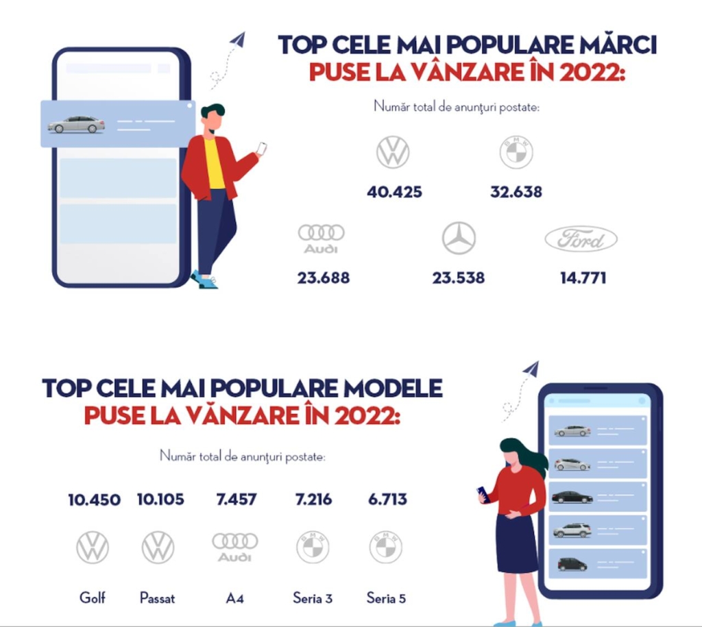 Mărcile auto cu cele mai multe oferte au fost Volkswagen, BMW, Mercedes-Benz, Audi și Ford. În ceea ce privește interesul cumpărătorilor, aceștia s-au concentrat tot pe mărcile Volkswagen și BMW, reprezentând 27% din totalul vizitelor, urmate de Audi și Mercedes-Benz cu 12%, respectiv 11% din totalul vizitelor pe platformă.