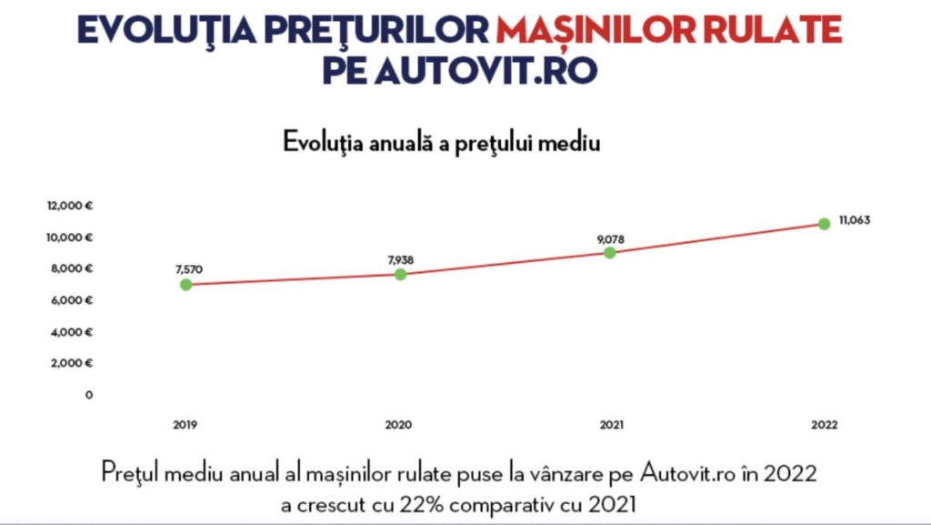 La finalul anului 2022 prețul mediu al mașinilor prezente pe Autovit a fost de 11.198 de euro, mai mare cu doar 3% față de prețul mediu din ianuarie 2022, dar cu 18% față de decembrie 2021.